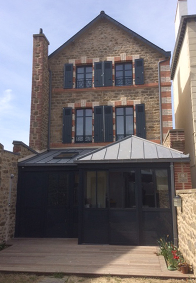 Cette maison en pierres apparentes,de trois étages, typiquement malouine voulait grandir. Ce fut chose faite une fois l’ancienne veranda remplacée par une extension de type atelier chapeautée d’une toiture en zinc.